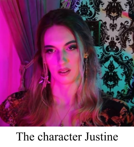 The Aesthetic is a dialogue, where two or more characters oppose each other in an artificial debate. Tabby represents the argument that the way things are matters more than how things look, and Justine represents the converse. The text is a representation of an inner dialogue: both characters and arguments are caricatures of aspects of Wynn. In Pronouns, Wynn admits that she didn't intend for either argument to win in The Aesthetic (Wynn, 00:18:29-00:18:42). Wynn believes each side has their merits in specific situations, like how gender is perceived differently in intrapersonal circumstances than in interpersonal ones, and so she argues different attitudes are needed for each circumstance (Wynn, 00:22:28-00:22:50).